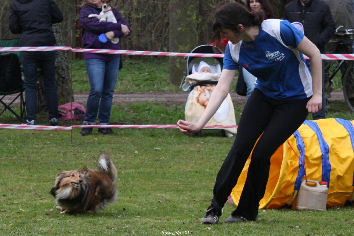 Běh o 12 překážkách, začátek byl super, na dálce to Cherriska úžasně zachránila a skočila, ač křivě, ale přece! Největší zradu jsem viděla přesně za tím tunelem, kde jsme se DISkly, mělo se jít doleva a Cherrís letěl na skočku, asi myslela, že bude finiš a ono ne, ale měla jsem mnohem víc stahovat! Pak to bylo fajn až na to, že jsem jí na poslední skočku neřekla kam má jít a ona chudák nevěděla. (5. místo ze 7 startujících, nejrychlejší čas v M, 0 chyb, 1x DIS = 15 TB)